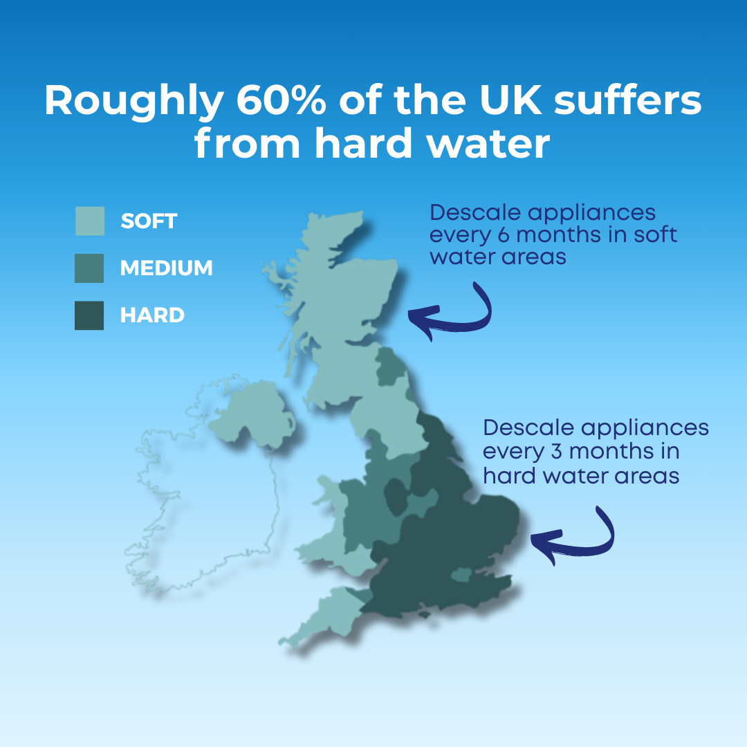 *To maintain performance, descale appliances every 3 months in hard water areas, and every 6 months in soft water areas.